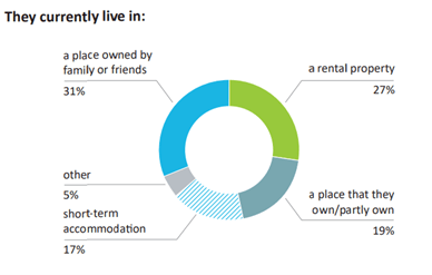 As this infographic shows, nearly one in three returnees surveyed were living in a place owned by family or friends, while 27 per cent were renting, and 19 per cent owned (or partly owned) their home.
