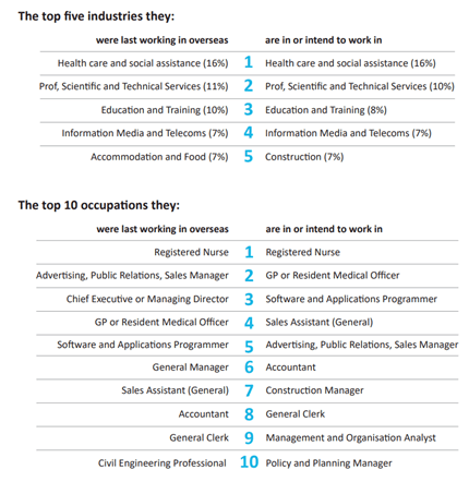As for skills and experience, 60 per cent of New Zealand arrivals had a bachelor’s degree or higher. Only 11 per cent returned to a job already held in New Zealand; the majority either wasn’t working in paid employment at the time of the survey (38 per cent), or had a new job in New Zealand (35 per cent).