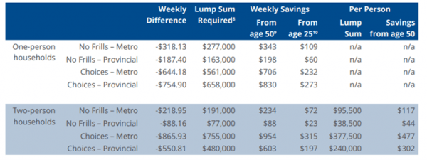 Put simply, people require a bigger lump sum to fund this additional spending. And as the table above shows, the earlier they start, the less they need to put aside weekly for their retirement.